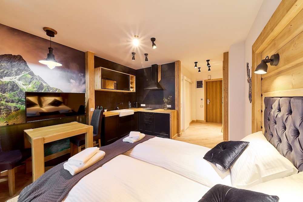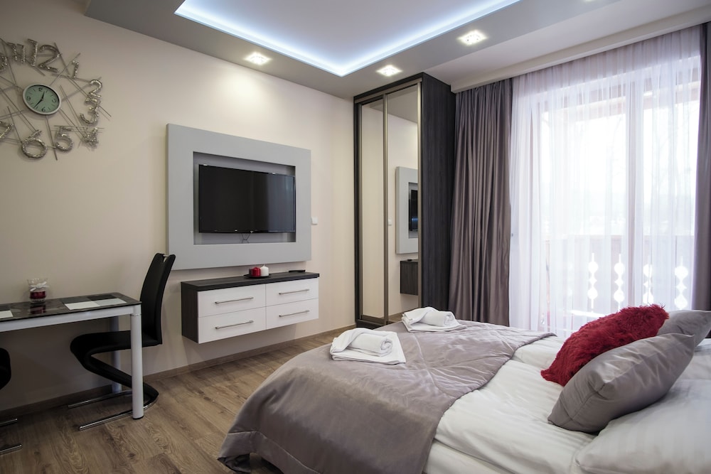 A stay at ApartHotel Giewont places you in the heart of Zakopane, steps from Krupowki Street and Gugu Park Linowy. This spa hotel is 0.6 mi (1 km) from Zakopane Aqua Park and 0.7 mi (1.2 km) from Zakopane Art Gallery. Stay in one of 45 guestrooms featuring LCD televisions. Complimentary wireless internet access is available to keep you connected. Bathrooms feature showers with rainfall showerheads and complimentary toiletries. Housekeeping is provided on request, and both irons/ironing boards and cribs/infant beds (surcharge) are available on request. Distances are displayed to the nearest 0.1 mile and kilometer.